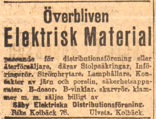 Elektriska Inspektion som då hade inspekterat Säbyföreningens
