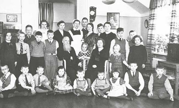Barn och personal på barnhemmet 1937.