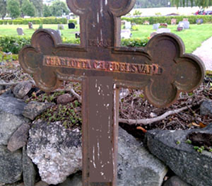 Vid vår renovering av tiondeboden låg där ett gravkors med inskriptionen Charlotta Ch. Edelsvärd född Thun 24/6 1797 död 7/3 1857.