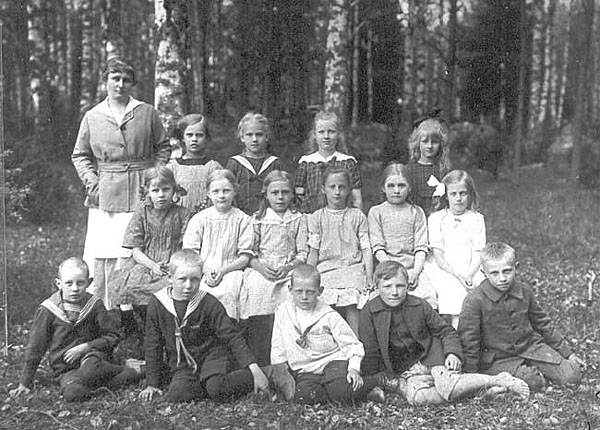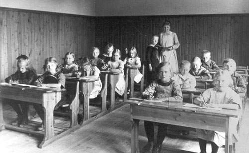 Sedan tog skolan sin början med innanläsning för de äldre barnen samt stavning och läsning av bokstäverna för nybörjarna. Då fick vi göra bekantskap med en liten tingest, som nutida skolbarn ej ha något begrepp om - pekpinnen. En sådan måste varje skolbarn medföra till skolan.