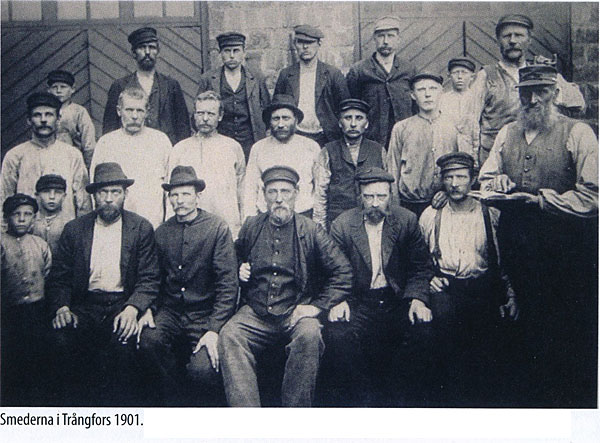 Sven Johan Hult med smältsmeder i Trångfors 1898. Källa: David Lunde.