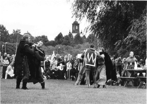 Den 2 september uppfördes ett skådespel som visade att Birger Jarl sände biskop Kol till folkungarna för att medla. Om folkungarna lade ner sina vapen och kom över bron så skulle fredsförhandling ske. Men när folkungarna kom över, obeväpnade, slogs de ned av Birger Jarls soldater.