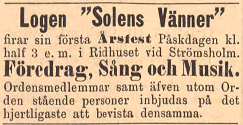 Den här berättelsen för samman två fascinerande delar av Strömsholms historia: dels de faktiska förhållandena och utvecklingen på orten under 1800-talet, dels en unik glimtar ur det samtida föreningslivet genom skildringen av Logen Solens vänners årsmöte på påskafton år 1884.