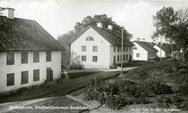Hus vid "gatan" eller vägen mot Borgåsund. Stallbetjänternas en- och tvåvåningars bullerstenshus. Foto: No 14 EJLERT. Strömsholm.